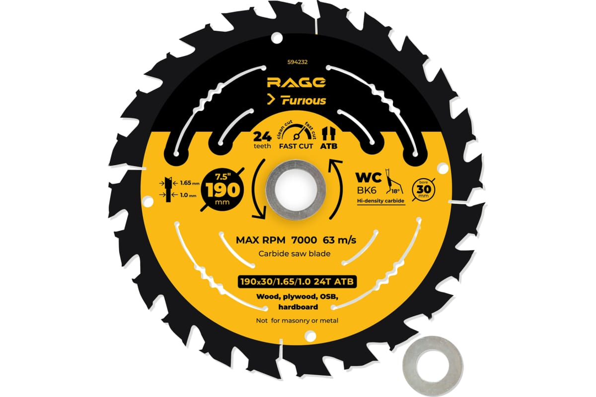 Диск пильный 190*24*30/20/16 по дереву Rage Furious (594232)