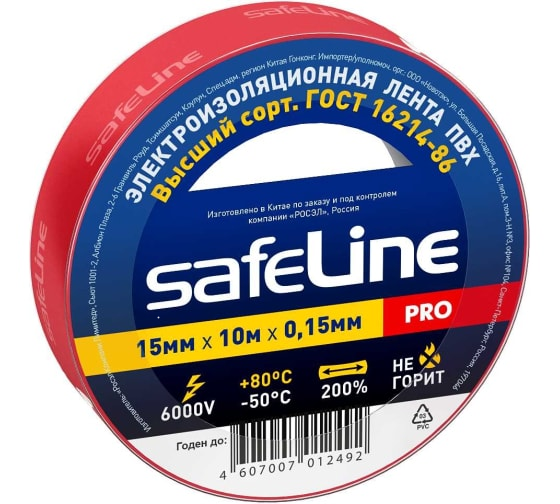 • Изолента красная 15мм*10м Safelline (4104) в Мегионе