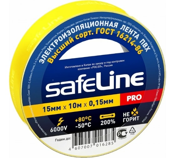 Изолента желтая 15мм*10м Safelline (4102)