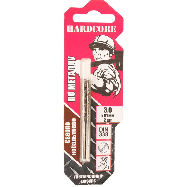 Сверло по металлу 3,00мм цил.хв. Hardcore Cobalt 2шт/уп (141030)