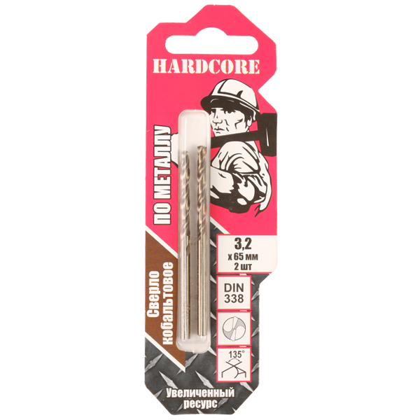 Сверло по металлу 3,20мм цил.хв. Hardcore Cobalt 2шт/уп (141032)