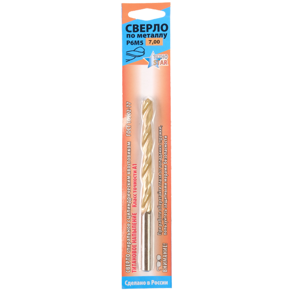 Сверло по металлу 7,00мм цил.хв. титан. ГОСТ10902А1 Р6М5-ШБ