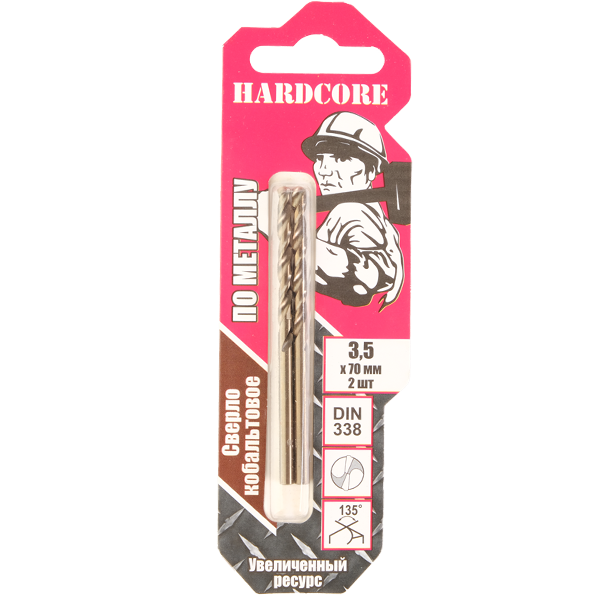 Сверло по металлу 3,50мм цил.хв. Hardcore Cobalt 2шт/уп (141035)